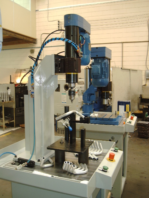 PRINCÍPIO: - O Sistema de Fluofuração ou Furação por Escoamento, constitui-se, na utilização de uma ferramenta rotativa, em metal duro, denominada:- Fluofurador, fixada em um mandril porta-pinças, com aletas de dissipação de calor em Alumínio, montados em uma Furadeira convencional.